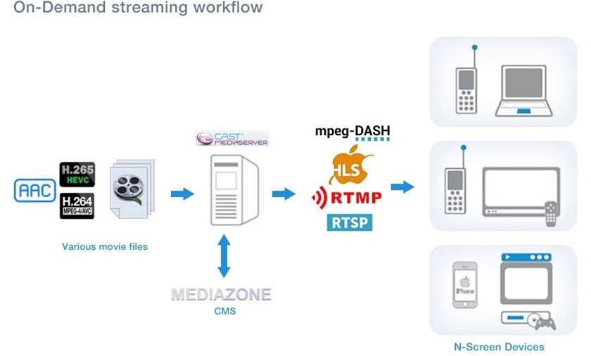 Contents Management System(CMS)¸¦ ÅëÇØ MP4, FLV ÆÄÀÏÀ» VOD ¼¹ö ½ºÅ丮Áö¿¡ ¾÷·ÎµùÇÑ ÈÄ µ¿½Ã¿¡ ¼ö¸¹Àº Ŭ¶óÀÌ¾ðÆ®¿¡¼ ´Ù¾çÇÑ ÇÁ·ÎÅäÄÝ·Î Àç»ý(Play/Stop/Pause/Move/Trick) ÇÒ ¼ö ÀÖ´Â END-to-END ¼Ö·ç¼ÇÀ» Á¦°øÇÕ´Ï´Ù.